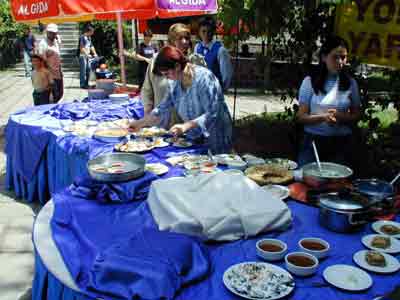 Gümüşhane 11. Uluslararası Kuşburnu- Pestil, Su Sporları ve Yayla Şenlikleri'nin üçüncü gününde yöresel yemekler ile pestil ve pekmez yarışması düzenlendi.
