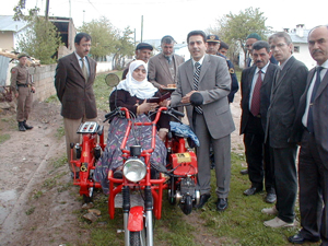 Daha sonra Kınalıtaş Köyü ve Öbektaş Beldesi'ne giden Kaymakam Oral, burada özürlü vatandaşlar Yakup Çelik ve Habip Demir'e de birer sakat aracı hediye etti.