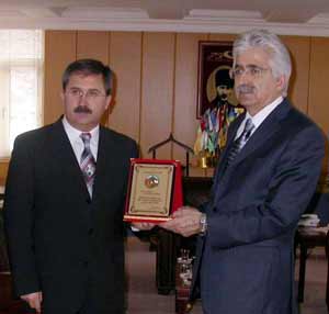 Vali Dalmaz, Köy Hizmetleri Genel Müdürü Altuntaşa Gümüşhaneye gösterdiği hassasiyetten dolayı teşekkür ederek plaket verdi.