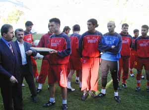 Pazar günü kendi sahasında oynayacakları Tokatspor maçının hazırlıklarını sürdüren Gümüşhanespor’u ziyaret eden Vali Veysel Dalmaz futbolculara baklava yedirirken, Tokatspor maçından galibiyet istedi.