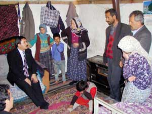 Vali Veysel Dalmaz, ayaklarından sakat olan baba Hüseyin Kaçan (40) ve 2 yıl önce rahatsızlanarak yanan sobanın üzerine düşmesi sonucu yüzünde derin yara izleri oluşan anne Gülhan Kaçanı (37) evlerinde ziyaret etti.