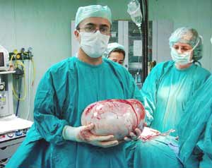 Dr. Yüksel Kurban, Köroğlunun yaklaşık 1 yıldır karnındaki ur ile yaşadığını belirterek, "Ancak son zamanlarda karnı giderek büyümeye başlayınca rahatsızlık hissederek bize geldi. Yaptığımız kontroller sonucunda kitleyi tespit ederek, hastayı ameliyat ettik. Ameliyat başarılı geçti, hastamız eski sağlığına kavuştu" dedi.