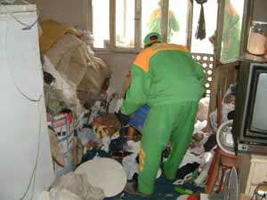 Bunun üzerine olay yerine gelen polis, kapıyı kırarak içeri girdi. Yaşlı kadının güçlükle ekip otosuna bindirilmesinin ardından temizlik görevlileri de eve girerek, çöpleri topladı.