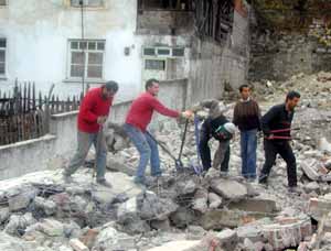 Yıkım bölgesine akın eden Karabüklü işsiz gençler ise yıkılan evlerin enkazı arasında ekmek paralarını çıkarmaya başladı.