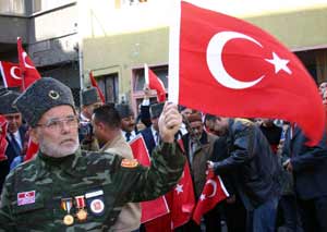 "Bayrağa uzanan eller kırılsın", "Ya sev ya terk et", "Bayrağı yakanı biz de yakarız", "İnadına Müslüman, İnadına Türk", "Sevdamız Türkiye, Avrupa Değil" şeklinde sloganlar atan kalabalık, daha sonra ellerinde bulunan Türk bayrakları ile Albay Karaoğlanoğlu Caddesinde yapılan konuşmalara katıldı. Bu arada Mersinde düzenlenen Nevruz kutlamaları sırasında Türk bayrağına yapılan saldırıya tepkilerini göstermek için birer konuşma yapan AK Parti Karabük milletvekillerinin konuşması, ülkücü gençler tarafından terörist başı Abdullah Öcalan aleyhine atılan sloganlar ile kesildi.