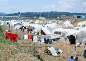 Şanlıurfa'dan kalkarak Ordu'ya gelen yaklaşık 500 kişi, Organize Sanayi Bölgesi'nin boş bir alanına kamp kurdu. Çamurlu arazide kurdukları çadırlarda hayat mücadelesi veren Güneydoğulu fındık işçileri, kendilerine iş verecek üreticileri bekliyor.