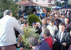 İzdiham sebebiyle sağlıklı bir fidan dağıtımı yapılamayacağını gören yetkililer, vatandaşların sıraya girmesini istedi.