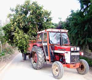 Traktör sürücüsü Murat Tepeli, mandalina ağacının İsmail Karamolla’ya ait olduğunu belirterek, "Aynı büyüklükte kökü ile birlikte bugün 4 adet mandalina ağacı taşıdım" dedi.