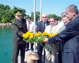 Hükümet Konağı önündeki törenin ardından Garnizon Komutanı Binbaşı Kalender Karadağ, İlçe Jandarma Komando Bölük Komutanı Üsteğmen Hasan Dazkır, Belediye Başkan Yardımcısı Muharrem Aktepe ve bazı daire amirlerinin katılımlarıyla Fatsa İskelesi'nden denize çelenk bırakıldı. Çelenk denize bırakılmadan önce İlçe Müftüsü Mehmet Ceylan tarafından deniz şehitleri için dua okundu.