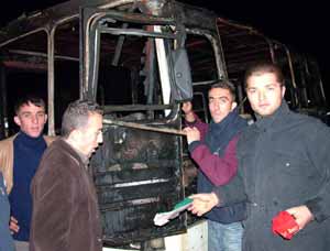 Ordu’nun Fatsa İlçesi’nde balıkçıların yatakhane olarak kullandıkları ve "Hamsi Palas" adını verdikleri otobüs, elektrik kontağından çıkan yangında alev alev yandı. Otobüsün içerisinde bulunan 3 balıkçı ve şoför camı kırarak canlarını kurtarabildi.