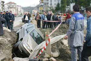 Rizede meydana gelen trafik kazasında, yolda TEDAŞ tarafından açılan çukuru göremeyen bir kişi aracıyla bu çukurun içine düştü.