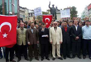 Rizede bugün yüzlerce ülkücü Cuma Namazı çıkışı Şeyh Camii önünde toplandı. Türk Bayrakları açan ülkücüler sloganlar atarak, terörist başı Abdullah Öcalan hakkında adil yagılanmadığı kararına varan AİHMi protesto etti.