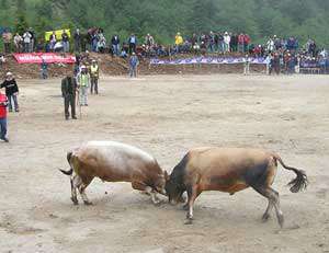 Her yıl geleneksel olarak yapılan boğa güreşlerine, Rize ve çevresinden getirilen 51 boğa katıldı. Yerli ve yabancı turistlerin de ilgi gösterdiği boğa güreşleri çekişmeli geçerken, yarışmalarda arenayı terk eden bazı boğalar, izleyicilere heyecanlı anlar yaşattı.