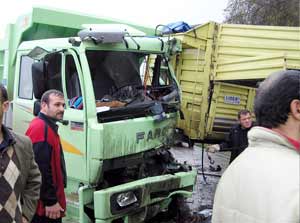 Rize’nin Çayeli İlçesi’nde hareket halindeki bir TIR’dan ayrılan dorse, karşı yönden gelen kamyona çarptı. Kazada kamyon şoförü feci şekilde hayatını kaybetti. Rize’den Artvin istikametine gitmekte olan Oktay Sönmez (45) yönetimindeki 61 K 2034 plakalı TIR, Çayeli-Pazar ilçe sınırında viraja hızlı girince çekmekte olduğu dorse araçtan koparak karşı yönden gelmekte olan Musa Kavalcı (32) yönetimindeki 53 K 0170 plakalı kamyona çarptı.