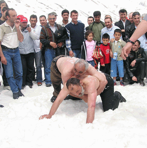 Kalkandere Doğa Sporları Derneği, halen karla kaplı olan Rizenin İkizdere İlçesi Ovit Yaylasında kar etkinlikleri düzenledi. Çok sayıda sporcunun ve vatandaşın katıldığı etkinlikte ilk olarak kar üzerinde güreş yapıldı. Orta yaşın üstündeki güreşçiler, yarı çıplak soyunarak güreş tuttular.