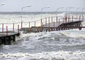 Yaklaşık 3-4 metre yüksekliğindeki dalgalar, Atakum Belediyesi tarafından sahile yapılan 240 metre uzunluğundaki iskeleye zarar verdi. Azgın dalgalar, iskelenin yürüyüş bandının bir kısmını yıkarken, iskelenin ayaklarının da yan yatmasına sebep oldu.
