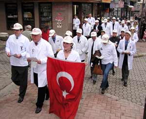 Samsunda diş hekimleri, sahte diş hekimlerine verilen cezaları hafifleten tasarının meclisten geçmemesi için yürüdü.