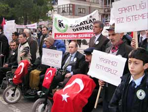 Altı Nokta Körler Derneği Samsun Şube Başkanı Ufuk Gürbüz, AB Uyum Yasaları çerçevesinde hazırlanan 94 maddelik Özürlüler Yasası’nın bütçeye 4 katrilyon liralık ek külfet getirdiğinden Maliye Bakanı Kemal Unakıtan’ın etkisiyle rafa kaldırıldığını belirterek, yasanın meclisten geçirilmesini istedi.