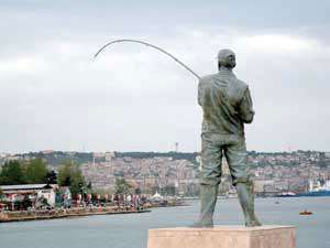 Samsun Büyükşehir Belediyesi tarafından sahil yoluna yaptırılan balık tutan adam heykelinin balığı 3. kez çalındı. Büyükşehir Belediyesi tarafından balık tutmayı teşvik için 2.5 yıl önce sahil yoluna yaptırılan balık tutan adam heykelinin oltasının ucundaki balık maketi, 3. kez çalındı.
