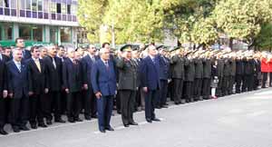 Çelenk sunma töreninden sonra saat 09.05’te sirenlerin çalmasıyla 1 dakika saygı duruşunda bulunuldu ve İstiklal Marşı okundu. İstiklal Marşı okunurken göndere çekilen bayrak, daha sonra yarıya indirildi. Törende, Ondokuz Mayıs Üniversitesi Rektörü Prof. Dr. Ferit Bernay, Adalet Komisyonu Başkanı Ahmet Akyüz, Bölge İdare Mahkemesi Başkanı Kemal Bilecan, belediye başkanları ile çok sayıda üst rütbeli subay da hazır bulundu.