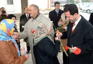 Samsun Büyükşehir Belediye Başkanı Yusuf Ziya Yılmaz ve İlkadım Belediye Başkanı Erdoğan Tok, kadınlara karanfil dağıttı.