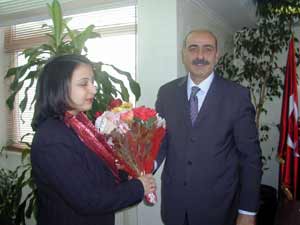 Başkan Yılmazer görevi Deniz Yalçına devretmesinin ardından bayan belediye çalışanlarını birimlerinde ziyaret ederek, Dünya Kadınlar Gününü kutladı. Zeki Yılmazer, bayan çalışanlara birer gül verdi.