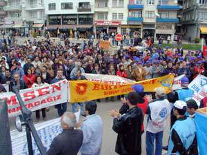 Yürüyüşe Cumhuriyet Halk Partisi (CHP) Sinop Milletvekili Engin Altay, CHP il örgütü ve Sosyal Demokrat Halkçı Parti (SHP) Sinop il örgütü de katıldı. Yürüyüş sırasında, işçiler çeşitli sloganlar attı.