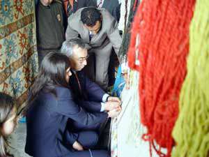 Kursiyerlerin yıl boyunca yaptıkları halıların yer aldığı sergi göz kamaştırırken, törene katılan Vali Zeki Şanal ise kursiyerlerle birlikte bir süre halı dokudu.