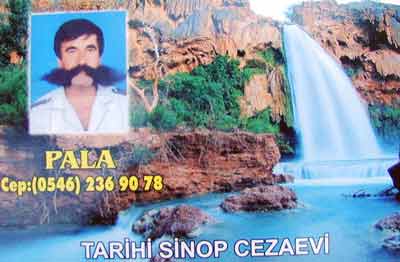 Geçtiğimiz yıl gardiyanlıktan emekli olduktan sonra tarihi Sinop Cezaevi'nde rehberliğe başlayan vatandaş, pala bıyıklarını ön plana çıkartan bir kartvizit bastırdı. Basılan kartvizitte Akif Şahin'in jöleli bıyıkları dikkat çekiyor. Kartvizitle hem kendini hem de cezaevini tanıtan Şahin, turistlerin büyük ilgisi karşısında bastırdığı kartvizitlerin, turist kafilelerince adeta kapışıldığını söyledi. Özellikle bayan turistlerin büyük ilgisi ile karşılaştığını söyleyen Şahin, "Tarihi Sinop Cezaevi deyince akla pala, pala deyince de akla Sinop Cezaevi geliyor. Biz tarihi cezaevi ile ayrılmaz bir parça olduk. Bu zamana kadar gelen turistler benim kartımı istiyorlardı. Bende geçtiğimiz günlerde kendi resmimi de içeren 5 bin adet kartvizit bastırdım. Tabi kartvizitte ön palana bıyıklarımın çıkmasını istedim. Bıyıklarım benim imajım. Bu imajımı kartvizitte de taşımak istedim. Gelen turistler benim bıyıklarıma adeta hasta oluyor" diye konuştu.