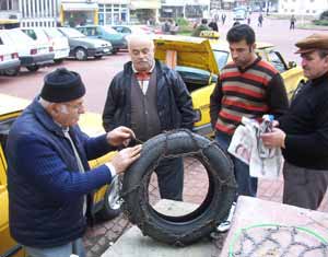 Kendisinin 5 dakikada zincir taktığını belirten emektar sürücü Kazım Ozanoğlu, "Bazı sürücü arkadaşlarımız 2 saatte ancak bir zincir takabiliyor. Oysa zincir takmanın bir usulü var. Bu usulü öğrendikten sonra pratik kazanılıyor. Zincir, bir sürücü için kış aylarında hayati önem taşıyor" diye konuştu.