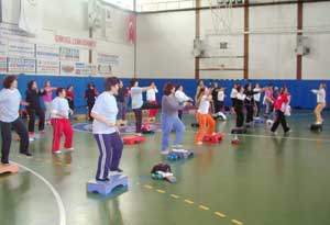 Spor yapmayan ev hanımlarını ve çalışan bayanları spor alanlarına çekmek ve spor yapma alışkanlığını kazandırmak amacıyla ilçe spor salonunda başlatılan çalışmalara 36 bayan katılıyor. Bir ay sürecek olan aerobik çalışmaları, beden eğitimi öğretmeni Ebru Karagülle tarafından yürütülüyor.