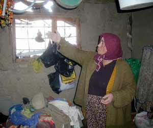 Evinin duvarına isabet eden taş parçası nedeniyle korku dolu anlar yaşadığını belirten Arife Tosun da, "Taşlar başıma yağdı, o an korkudan eve giremedim. Eve isabet eden taşlar duvarı delerek içeri kadar girmiş" dedi.