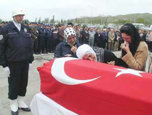 Özel Türkmenin cenazesi, bugün hastane morgundan ambulansla alınarak görev yeri olan Tokat İl Emniyet Müdürlüğüne getirilirken burada bir tören düzenlendi. Cenaze törenine katılan Özel Türkmenin annesi Saniye Türkmen, Anneler Gününde büyük acı yaşadı. Oğlunu Anneler Gününde kaybeden acılı anne ağıtlar yakarak oğlunun tabutuna sarılıp uzun süre gözyaşı döktü. Türkmenin polis memuru olan eşi Süreyya Türkmen ve 12 yaşındaki oğlu Atakan Türkmen de gözyaşlarını tutamadı. Küçük Atakanın, babasının tabutunu öpmesi cenaze törenine katılanların yüreklerini dağladı.