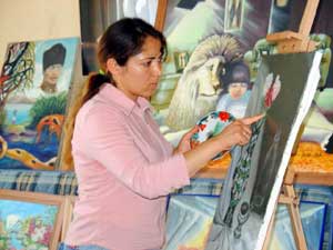 2 çocuk annesi ressam Hatun Akçay, fırça kullanmadan parmağıyla yağlı boya tablo yapıyor. Resim yapmaya 6 yaşında başlayan ve maddi imkansızlıklar nedeniyle eğitimine ilkokul 3. sınıftan sonra devam edemeyen Akçay, 24 yıl içerisinde yüzlerce resme imza attı. Yaptığı Belediye Başkanı Murat Ayvalıoğlu'nun yağlı boya portresini kendisine hediye eden Akçay, "Belediye başkanımız bana sahip çıktı. Bende başkanımızı çok sevdiğim için onun portresini yapıp kendisine hediye etmeyi düşündüm" dedi.