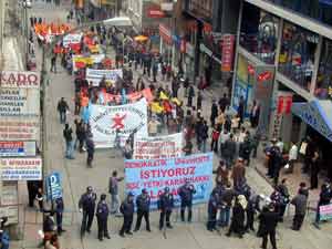 Yaklaşık 500 kişilik üniversiteli grubu, ellerinde pankartlar ve afişlerle Omesa Oteli önünde toplanarak buradan yoğun güvenlik önlemleri altında Atatürk Alanı’na yürüdü. Yaklaşık 250 polis ekibinin görev yaptığı yürüyüşte üniversiteli öğrenciler YÖK’ü ve KTÜ Rektörlüğü’nü protesto eden sloganlar attı. Kahramanmaraş Caddesi’nden Atatürk Alanı’na ilerleyen grupta herhangi bir taşkınlık yaşanmazken, grubun içindeki küçük yaştaki öğrenciler dikkat çekti.