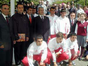 Daha sonra geleneksel olarak yapılan pilav dağıtımı sırasında zaman zaman izdihamlar yaşanırken, özellikle öğrenciler Trabzonspor Teknik Direktörü Şenol Güneşten imza almak için birbirleriyle yarıştı.