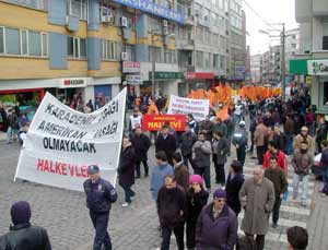 Doğu Karadeniz Bölgesi Halkevleri tarafından organize edilen miting öncesi TEDAŞ önünden Atatürk Alanındaki Trabzon Belediyesi önüne kadar bir yürüyüş gerçekleştirildi.