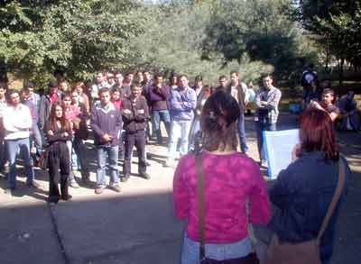 İktisadi ve İdari Bilimler Fakültesi’nde okuyan arkadaşlarının iki yarıyıl uzaklaştırma cezası almalarını kınadıklarını belirten Taşçıoğlu, "Mayıs ayında İstanbul Üniversitesi’nde yapılan Demokratik Üniversite Kurultayı’na katılan Mustafa Eberliköse ve Birgül Tuna isimli arkadaşlarımız üniversite işgali gerekçesiyle iki yarıyıl okuldan uzaklaştırma cezası aldılar. Bu hukuka aykırı durumun düzeltilmesini ve üniversitelerin kendilerini bilime vermelerini istiyoruz. Okul içinde sivil polislerin gezmesini ve arkadaşlarımız hakkında istihbarat toplamasını istemiyoruz" dedi.