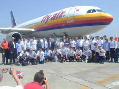 9 futbolcunun yer aldığı kafilede, sakatlıkları süren Erdinç ve Volkan yer almazken, Başkan Atay Aktuğ ve bazı yöneticiler de takımla birlikte gitti. Bordo-mavili futbolcular, Fly Air'e ait uçakla Letonya'ya havalanmadan önce uçağın önünde hatıra fotoğrafı çektirdi.