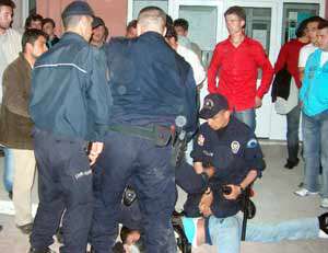 Polisin tüm ikazlarına rağmen, saldırganlığını sürdüren A.K., polis tarafından yere yatırılarak kelepçelendi. Ekip otosuna götürülürken de kendini yerden yere atan A.K., güçlükle zaptedildi.