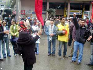 Zonguldakta İstasyon Caddesinde toplanan yaklaşık bin kişi, geniş güvenlik önlemleri altında İşçi Anıtına kadar yürüdü. Maden işçilerinden az sayıda katılımın olduğu yürüyüşte, Sosyalist Demokrasi Partisi (SDP) İl Başkanı Mehmet Zeki Salmanoğlunun 81 yaşındaki annesi Emine Salmanoğlu da bastonuna dayanarak güçlükle yürüdü.