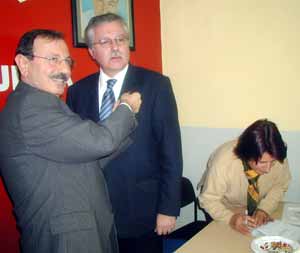 Yapılan törenle, CHP’ye kayıtları yapılan YTP Zonguldak eski İl Başkanı Yaman Ayözger’in parti rozetini CHP İl Başkanı Ali Koçal taktı