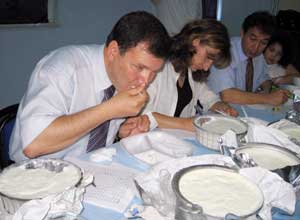 Nebioğlu Belediyesi tarafından düzenlenen Süt, Yoğurt ve Hayvancılık Festivali kapsamında yapılan en güzel yoğurt yarışmasına 16 kişi katıldı. Yarışmada birinci olan Avni Ermiş’e yem kırma makinesi, ikinci olan Kemal Çilesiz’e tam altın, üçüncü olan Muhammer Doğan’a ise çeyrek altın hediye edildi.