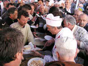 Namazın ardından dağıtılan etli pilav ve ayranlardan almak isteyen vatandaşlar izdihama yol açtı. Yaşanan izdiham nedeniyle, camiden anons yapılarak vatandaşların tek sıra olmaları istendi. Görevliler, anonslara aldırmayan vatandaşlara pilav vermekte güçlük çekti.