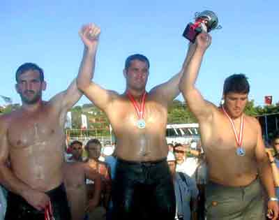 "Başpehlivan Ümit Balta (Adapazarı), 2. İrfan Şen, 3. Recep Kara