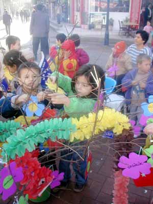 Sokak ortasında yakılan ateşte açlık, sefalet, yoksulluk, savaş, terör, işsizlik, yolsuzluk gibi tüm kötülükleri yakan çocuklar, temsili dilek ağacına da barış, sevgi, iyilik, adalet, zenginlik, şeker, çikolata gibi taleplerini asarak büyüklere mesaj verdi.