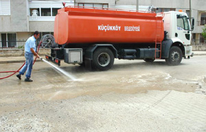 Küçükköy Belediyesi, sezonun yavaş yavaş hareketlendiği beldede sokakları deterjanlı suyla yıkıyor. Özellikle Sarımsaklı Mevkiinde temizlik işleri özelleştirilirken, beldenin turistik kesimleri her gün ilaçlı sularla yıkanıyor.