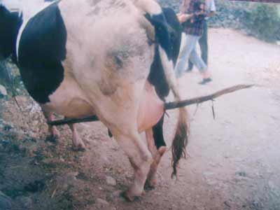 İnek karşıya geçtiği sırada, memesine söğenlerden biri girdi. Acı içinde kıvranan inek, hemen veterinere götürüldü.