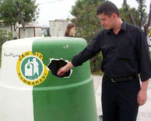 Bandırma Belediyesi tarafından geçen sene ilçenin çeşitli yerlerine konulan dev kumbaraların, geceleri şişe ve karton toplayan kişiler tarafından, içerisindeki şişeleri almak amacıyla çeşitli yerlerinden kırılması vatandaşların tepkisine yol açtı.