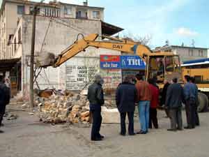 Balıkesir’in Burhaniye İlçesi’nde otogar yeniden düzenleniyor. Garaj içindeki kullanılmayan soğuk hava deposunu yıkan belediye, dün de taksi duraklarını yıktı.